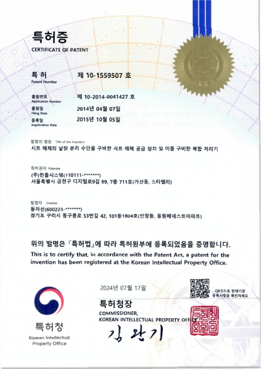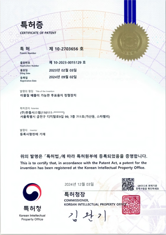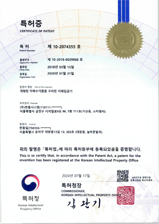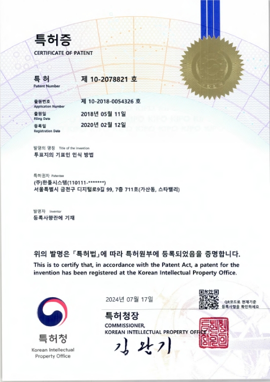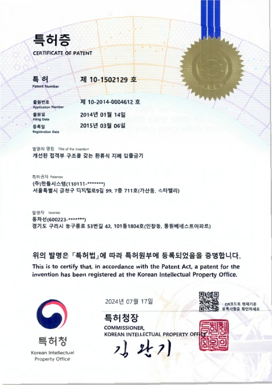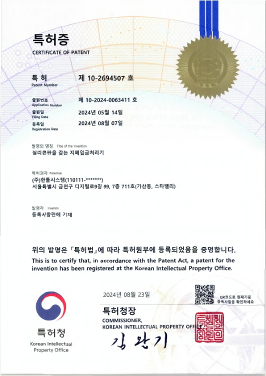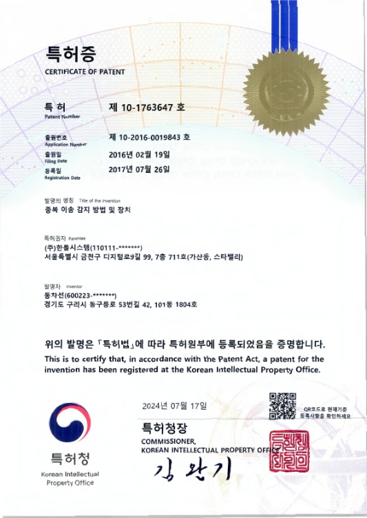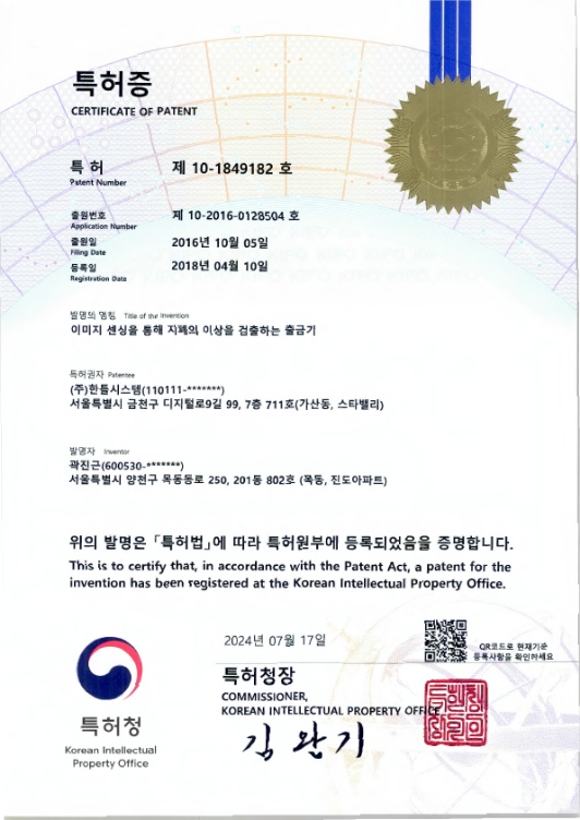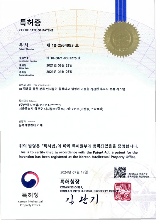 한틀시스템은 현재 관련 기술 분야에서 20건 이상의 특허를 보유하고 있으며, 이를 기반으로 제품의 경쟁력과 기술적 신뢰성을 지속적으로 강화하고 있습니다.